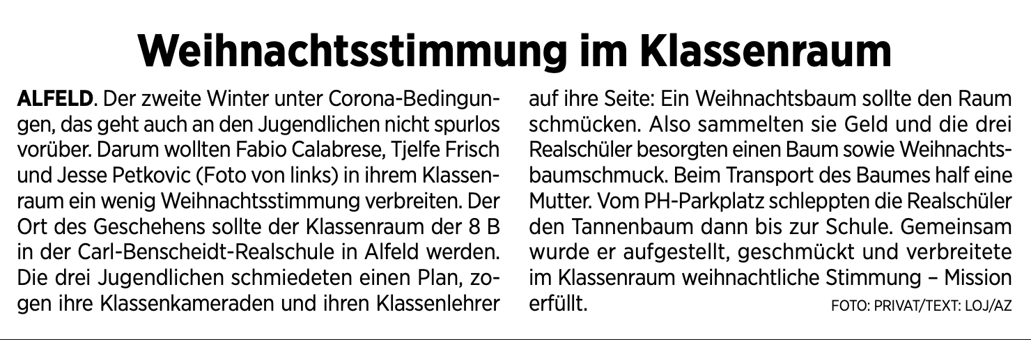 Weihnachtsstimmung im Klassenzimmer