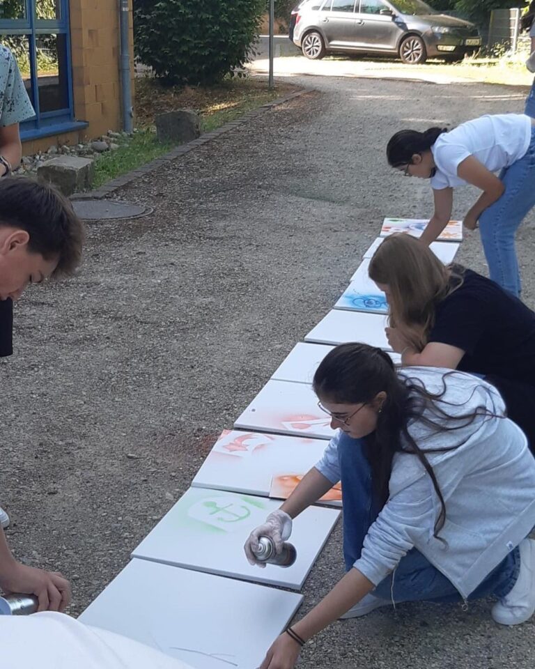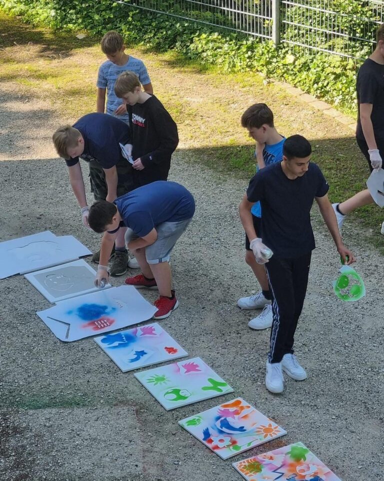 Einer der bekanntesten Streetart-Künstler, der für seine Graffitis Schablonen verwendet, ist der Brite Banksy. Wir lassen uns von ihm inspirieren und entwickeln selbst Motive für die sogenannten „Stencils“. Jeder kann seine Motive auf Karton sprayen und zum Abschluss schaffen wir eine große Gemeinschaftsarbeit.
