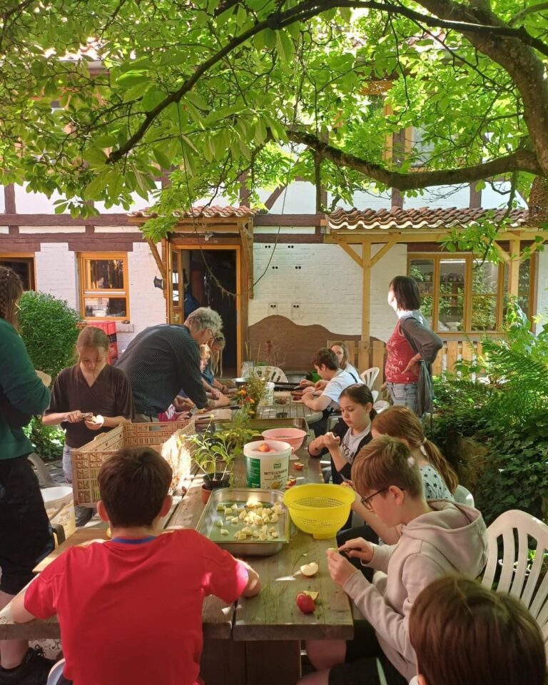 Bei einem Hofbesuch am LernOrt Lebendige Landwirtschaft könnt ihr vor allem Dinge selber machen, selbst gemachte Dinge essen und Dinge zusammen machen. Höhepunkt ist das gemeinsame Kochen und Essen. Wir werden Brötchen backen, eine einfache Form von Käse herstellen, Gemüse schneiden und braten, ein veganes Burger-Patty aus Gemüse – und natürlich Bauernkartoffeln.