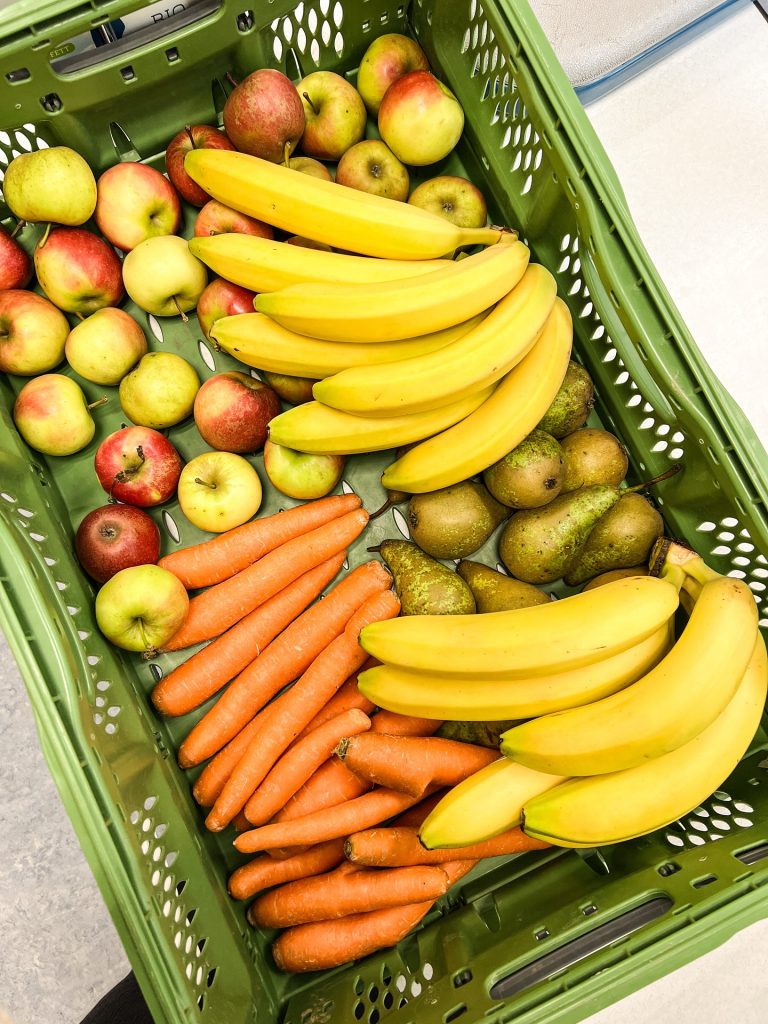 Seit nunmehr drei Jahren erhalten unsere Schülerinnen und Schüler der Jahrgänge 5 und 6 jeden Montag eine Lieferung mit frischem Obst, Gemüse und Milch. Dieses Angebot ist Teil des Schulobstprogramms in Niedersachsen, das gesunde Ernährung im Schulalltag fördert.