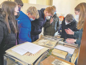Im Archiv der Stadt Alfeld geben sich die Schülerinnen und Schüler auf Spurensuche zum Feiertag 1. Mai.